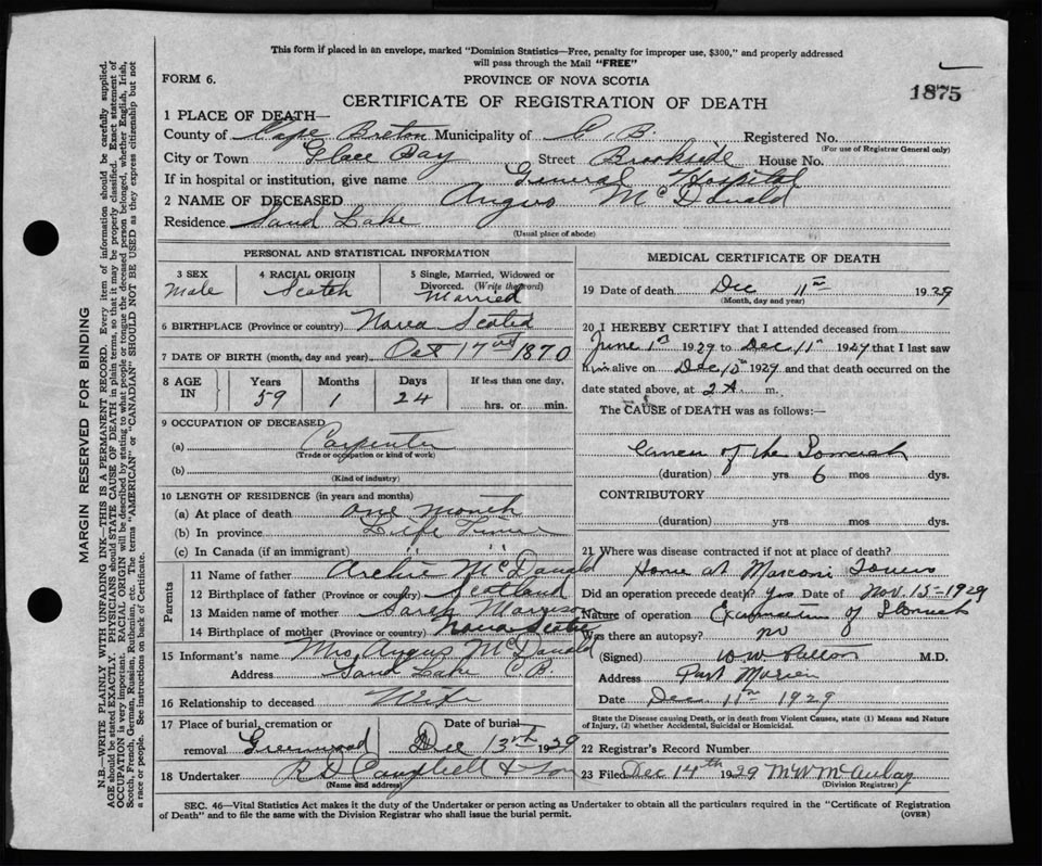 Nova Scotia Archives — https://archives.novascotia.ca/vital-statistics/death/?ID=222609