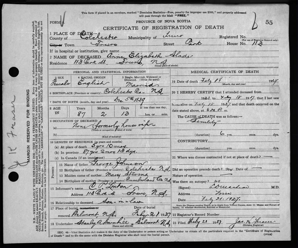 Nova Scotia Archives — https://archives.novascotia.ca/vital-statistics/death/?ID=222711
