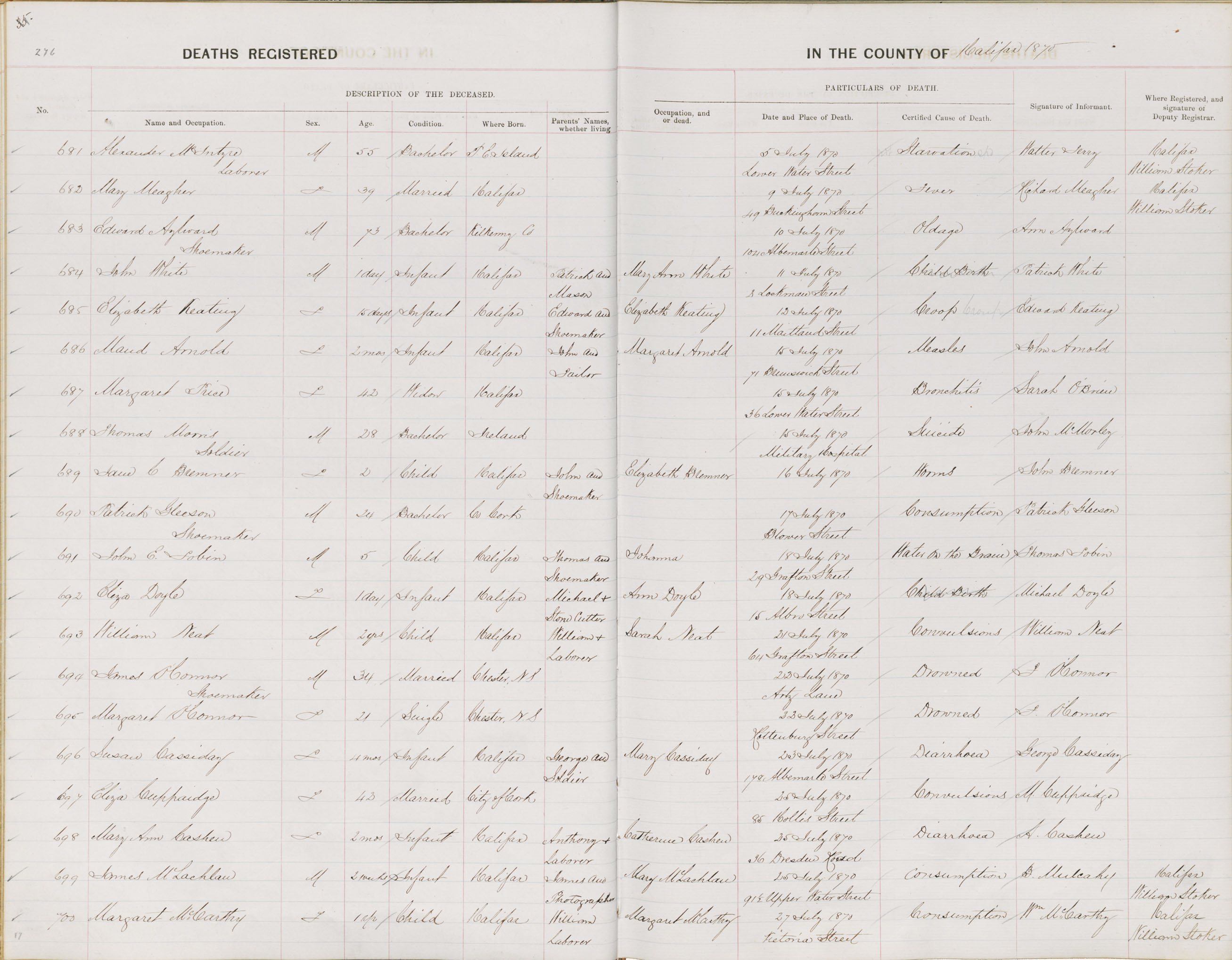 Death Registration: Year: 1870 book: 1808 page: 276 number: 700