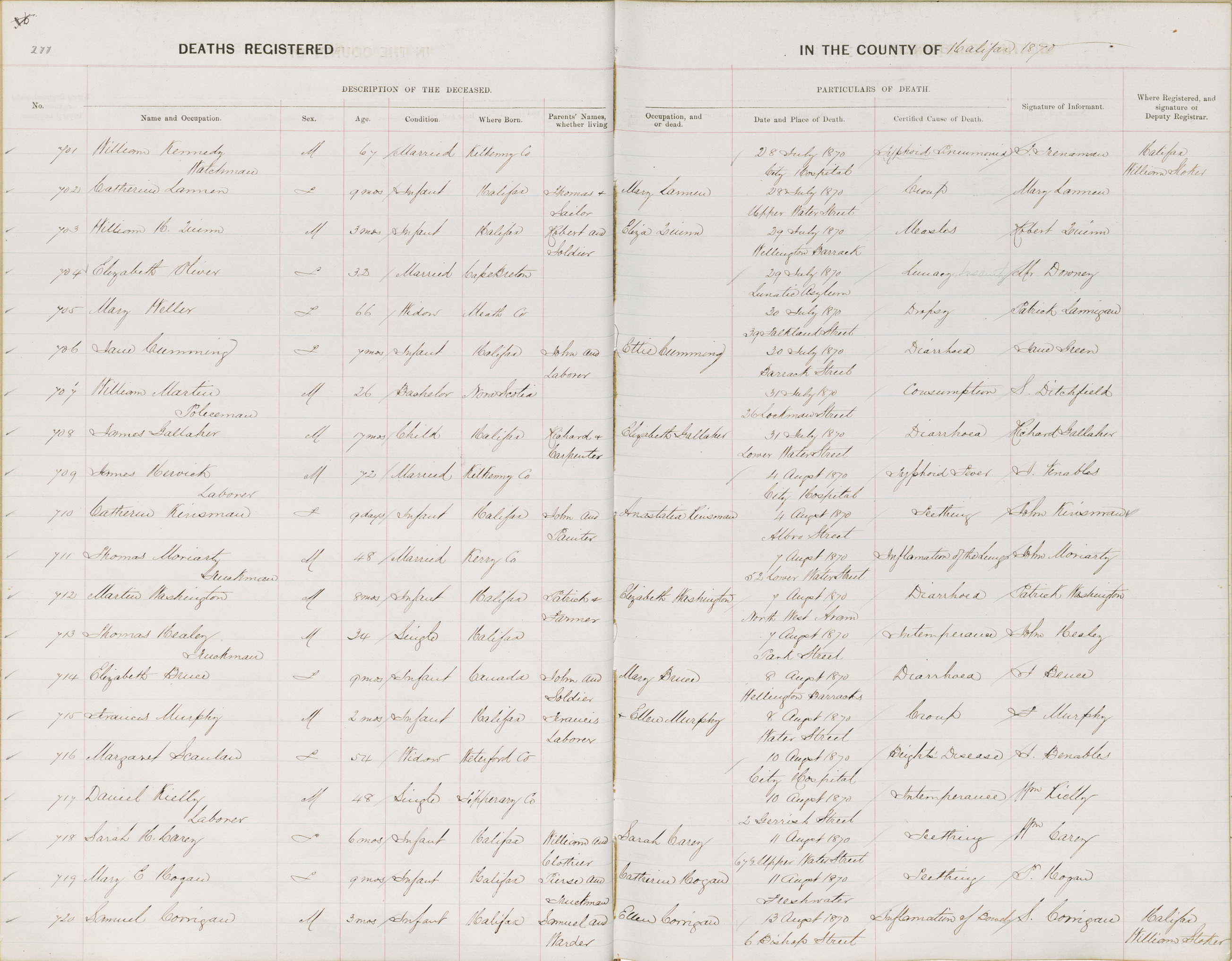 Death Registration: Year: 1870 book: 1808 page: 277 number: 720