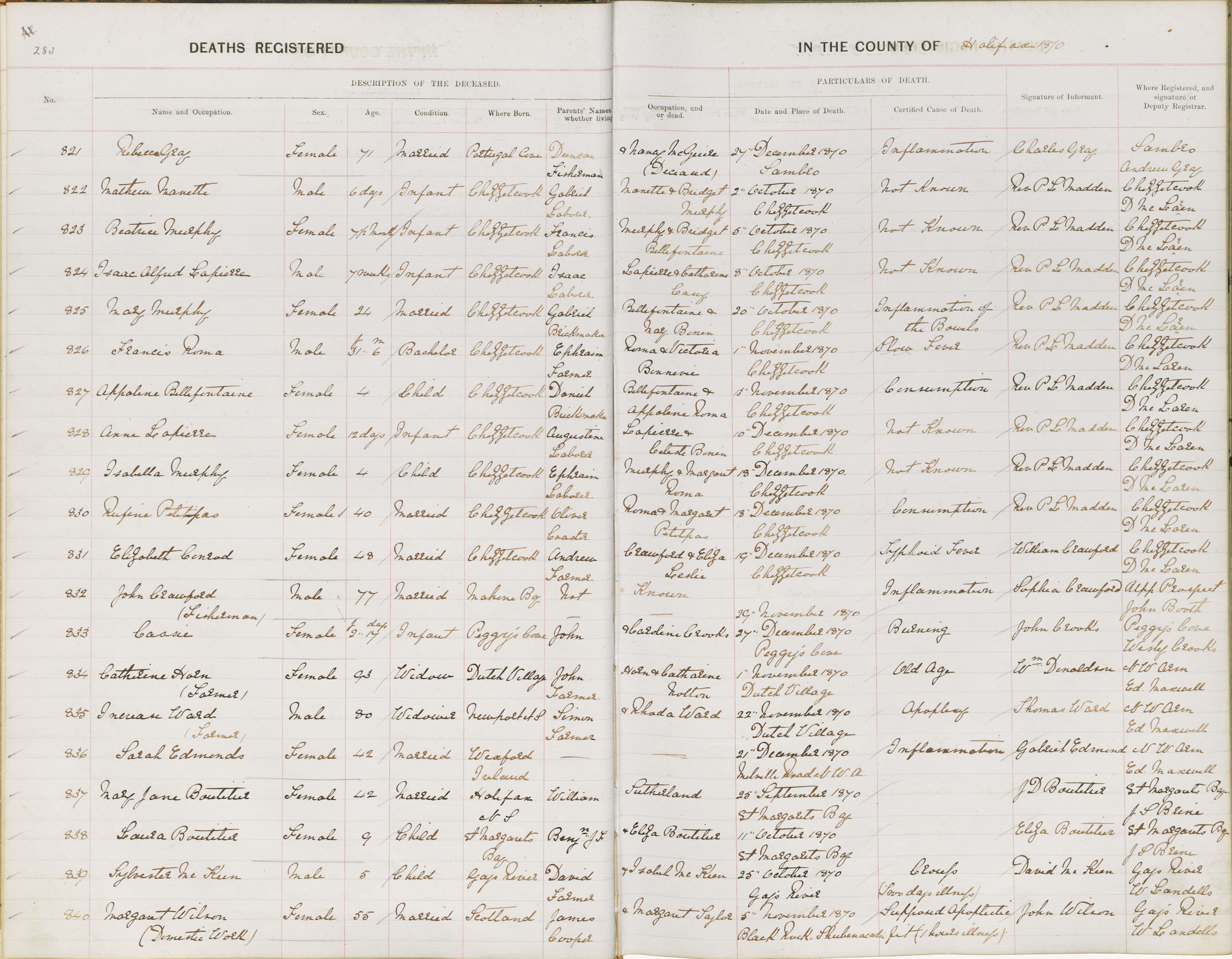 Death Registration: Year: 1870 book: 1808 page: 283 number: 840