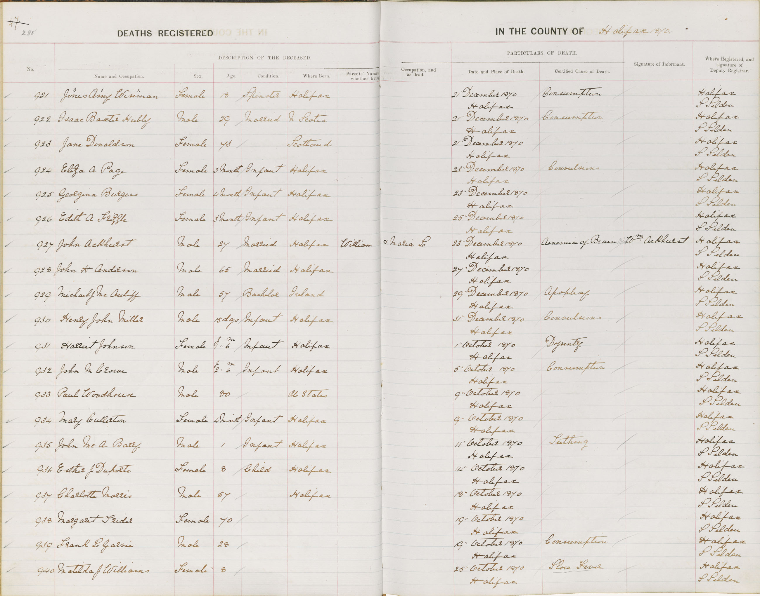 Death Registration: Year: 1870 book: 1808 page: 288 number: 921