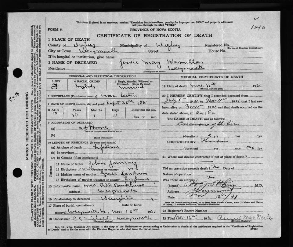 Nova Scotia Archives — https://archives.novascotia.ca/vital-statistics/death/?ID=226830