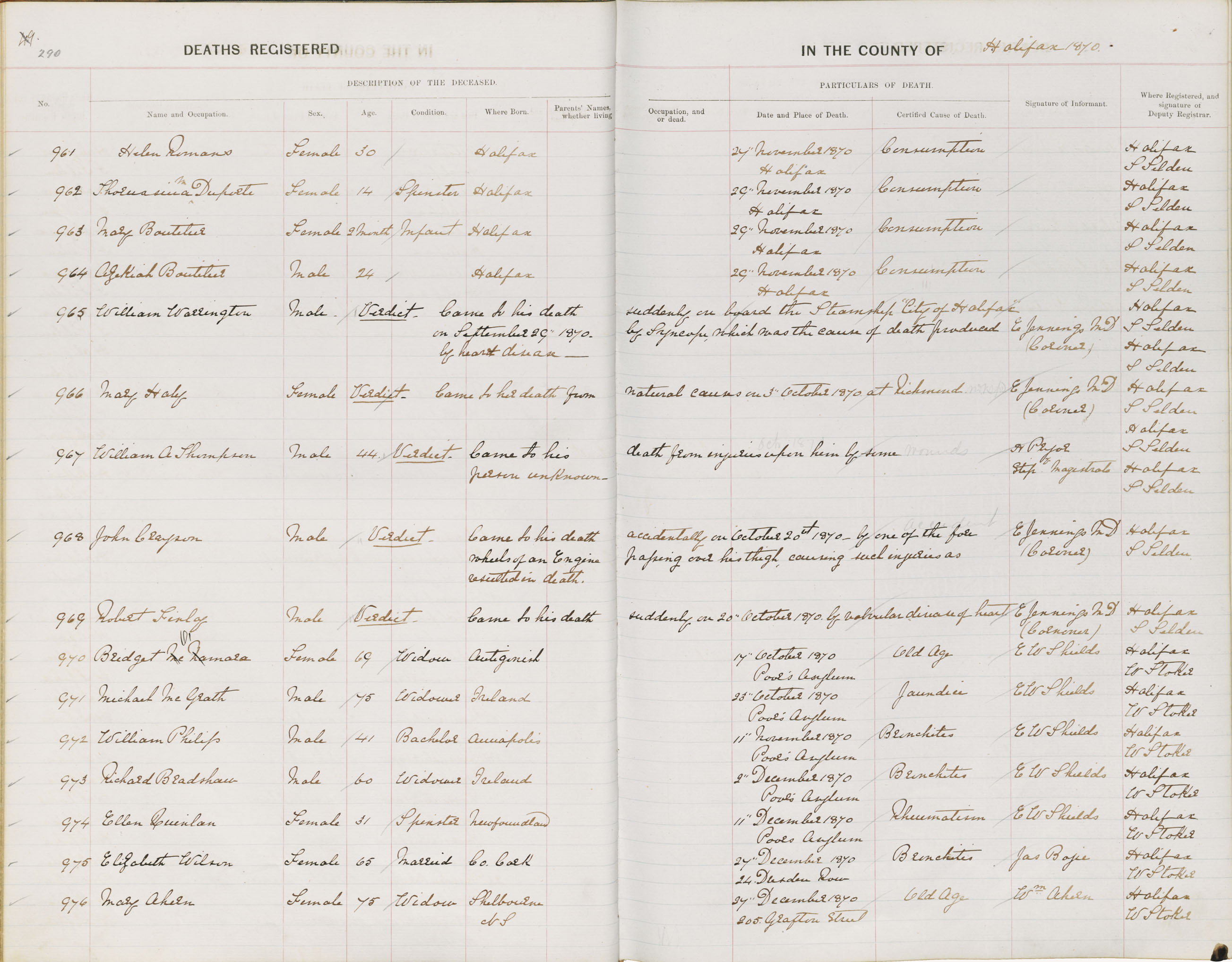 Death Registration: Year: 1870 book: 1808 page: 290 number: 961