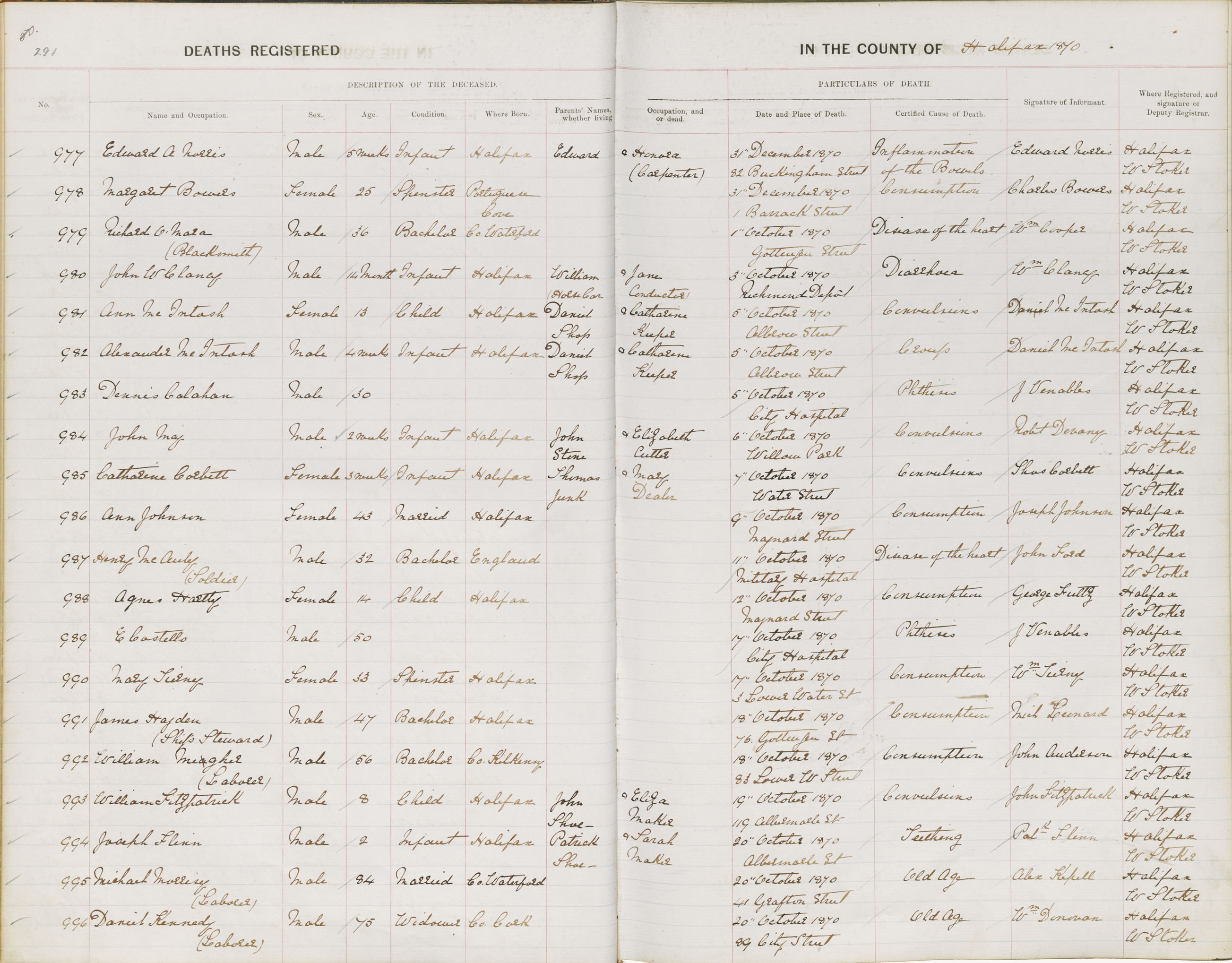 Death Registration: Year: 1870 book: 1808 page: 291 number: 982