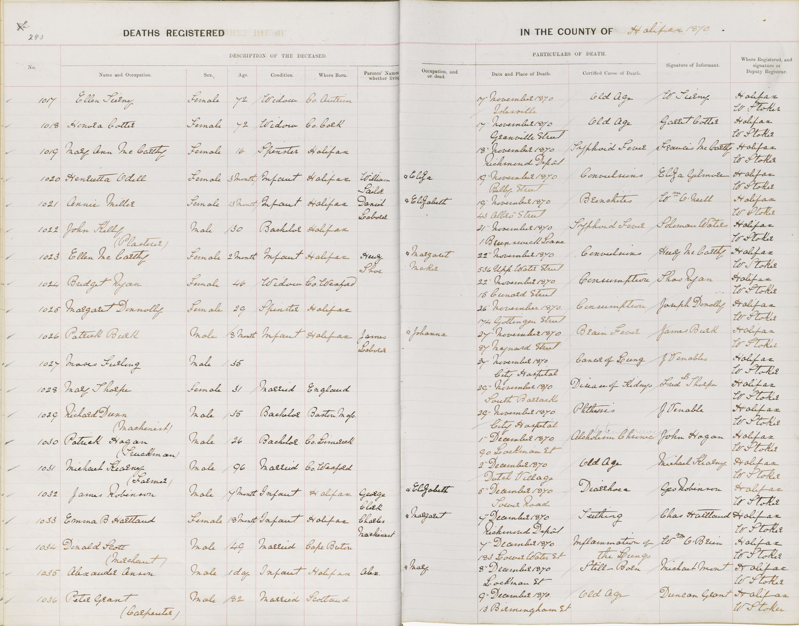 Death Registration: Year: 1870 book: 1808 page: 293 number: 1017