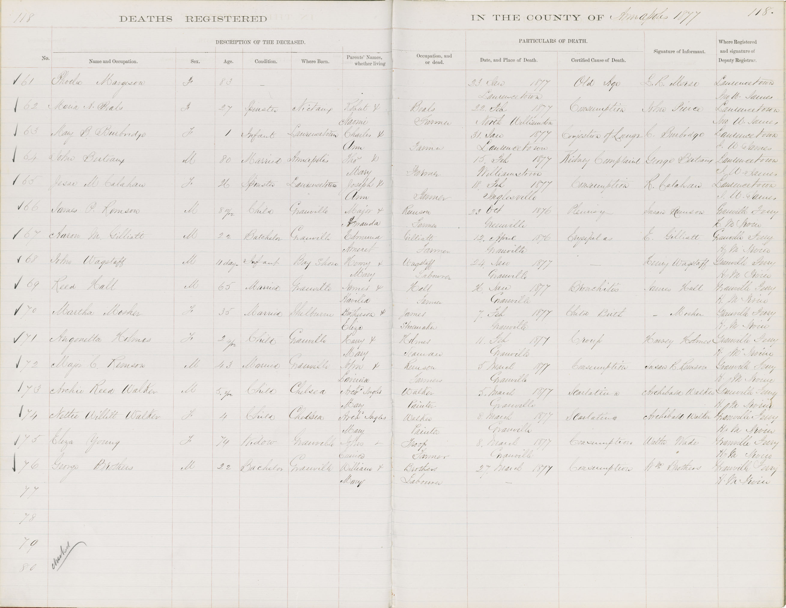 Death Registration: Year: 1877 book: 1801 page: 118 number: 61