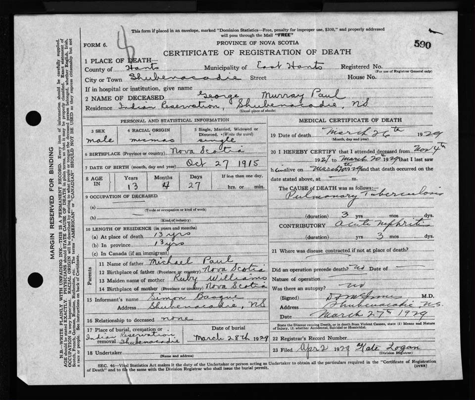 Male Death Registration: Year: 1929 file: 124 number: 590