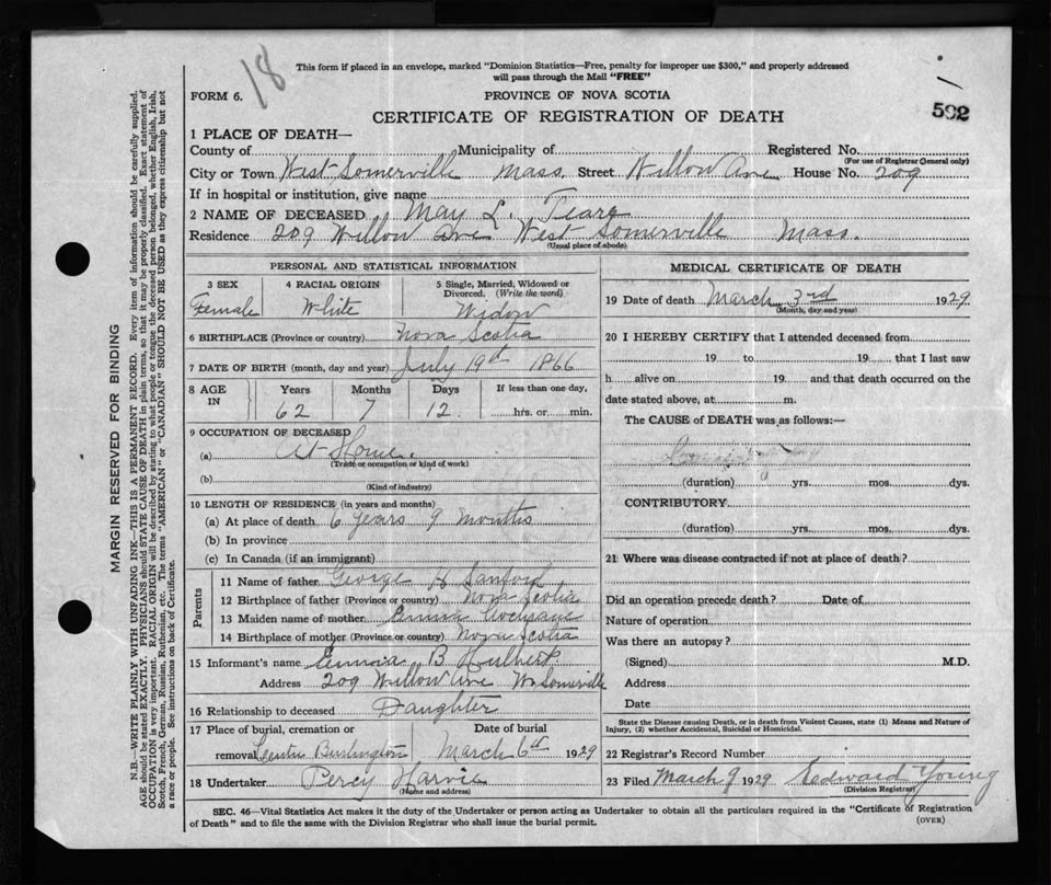 Nova Scotia Archives — https://archives.novascotia.ca/vital-statistics/death/?ID=230645