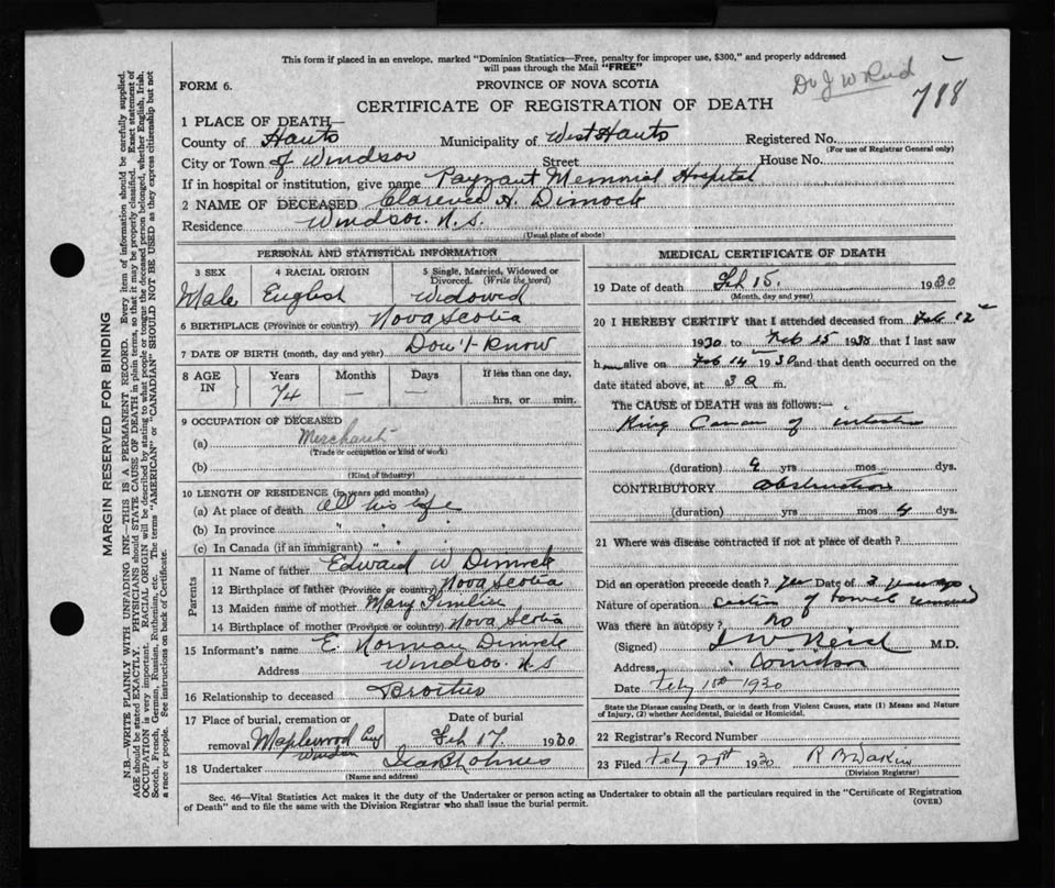 Nova Scotia Archives — https://archives.novascotia.ca/vital-statistics/death/?ID=230841