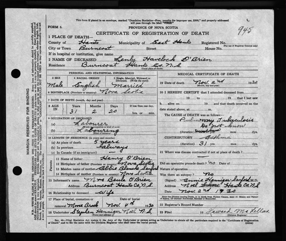 Nova Scotia Archives — https://archives.novascotia.ca/vital-statistics/death/?ID=230999