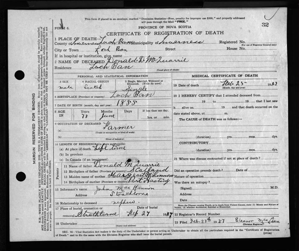 Nova Scotia Archives — https://archives.novascotia.ca/vital-statistics/death/?ID=231506