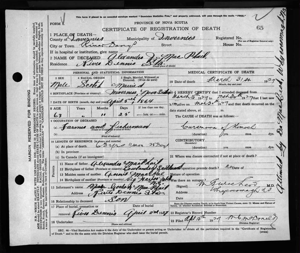 Nova Scotia Archives — https://archives.novascotia.ca/vital-statistics/death/?ID=231539