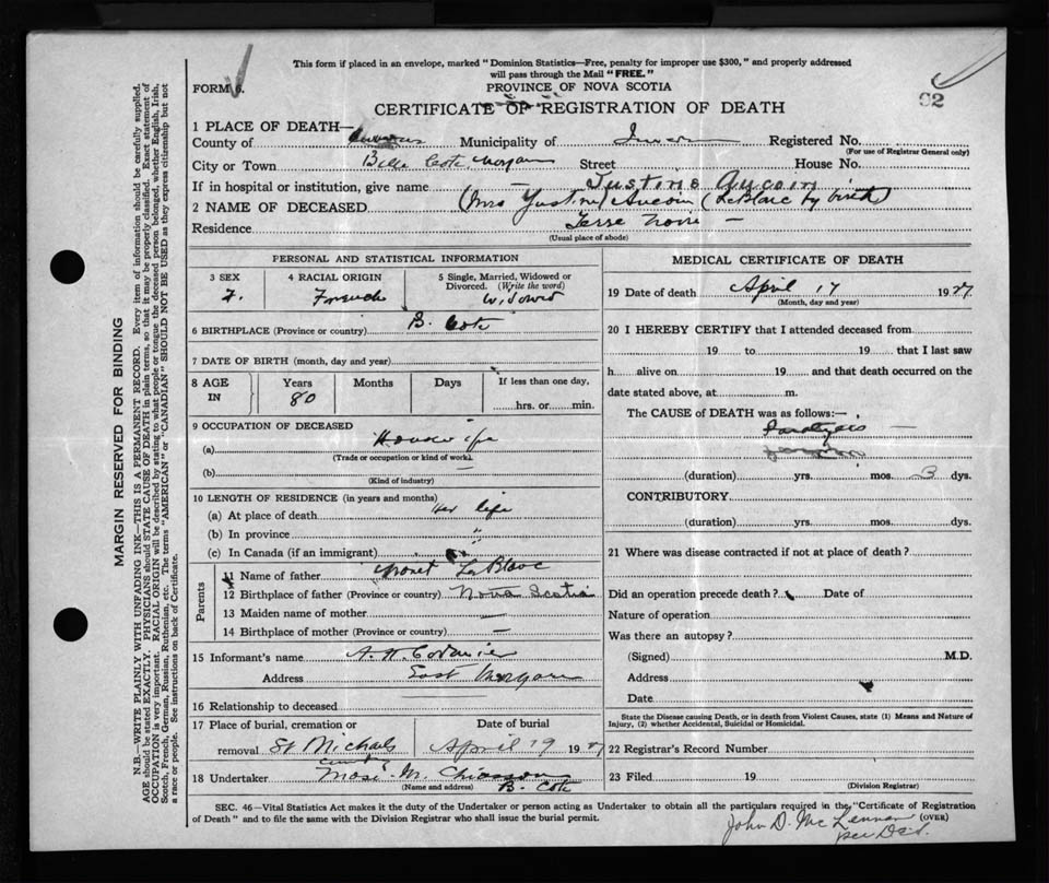 Nova Scotia Archives — https://archives.novascotia.ca/vital-statistics/death/?ID=231566
