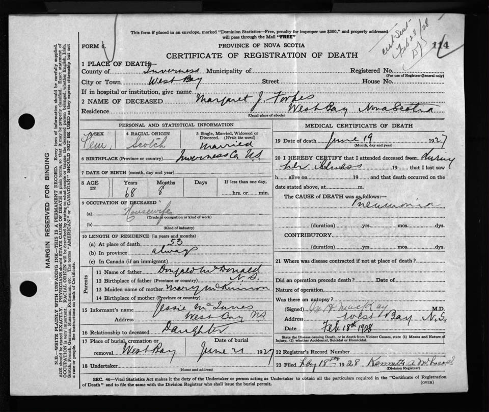 Nova Scotia Archives — https://archives.novascotia.ca/vital-statistics/death/?ID=231588