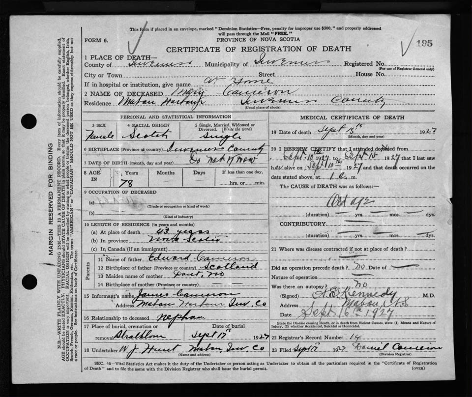Nova Scotia Archives — https://archives.novascotia.ca/vital-statistics/death/?ID=231669