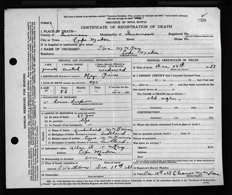 Nova Scotia Archives — https://archives.novascotia.ca/vital-statistics/death/?ID=231733