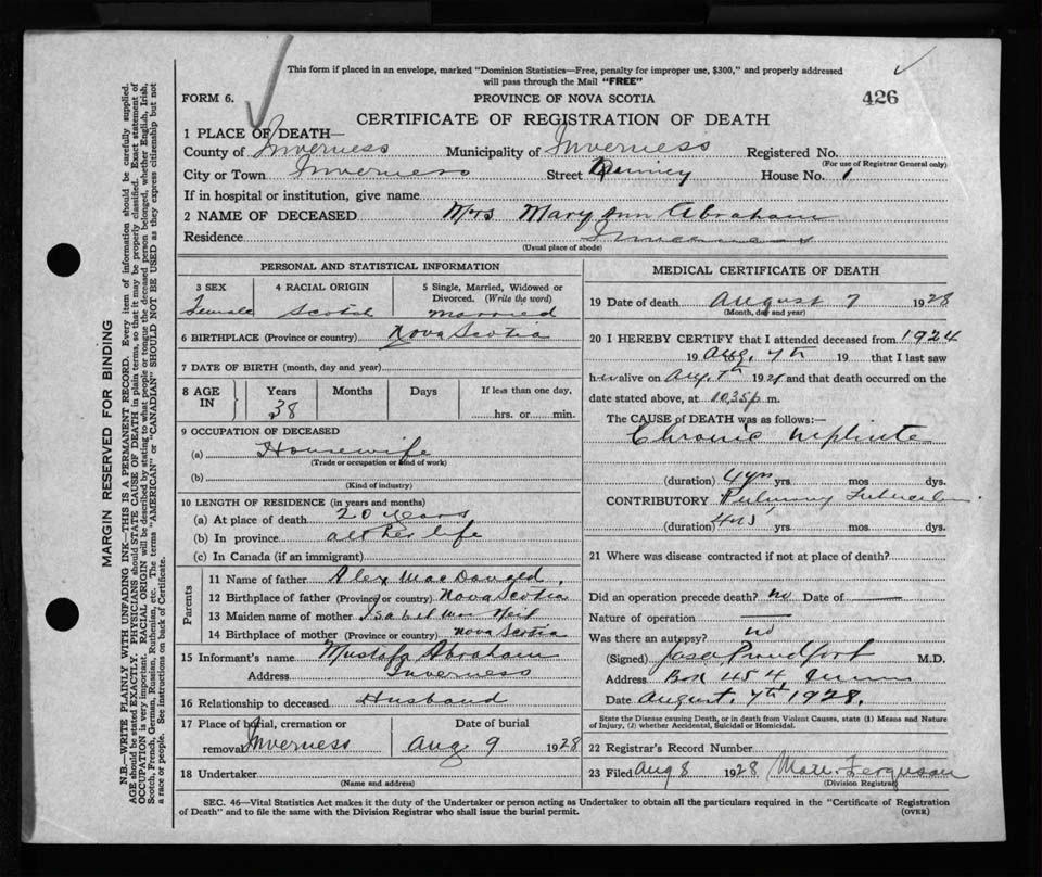 Nova Scotia Archives — https://archives.novascotia.ca/vital-statistics/death/?ID=231900