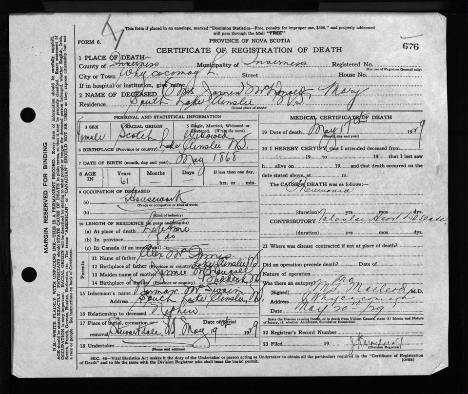 Nova Scotia Archives — https://archives.novascotia.ca/vital-statistics/death/?ID=232150