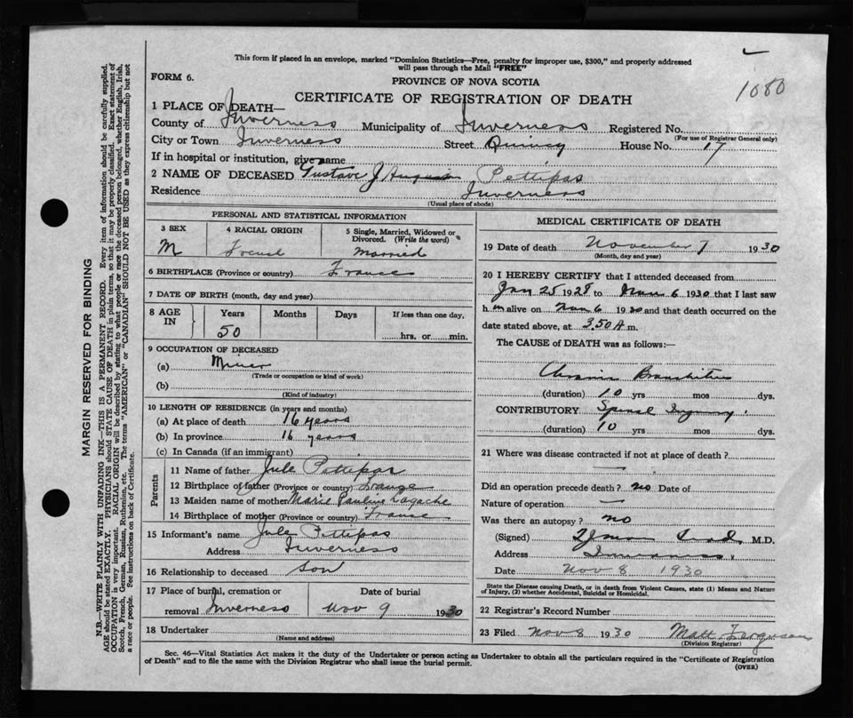 Male Death Registration: Year: 1930 file: 125 number: 1080