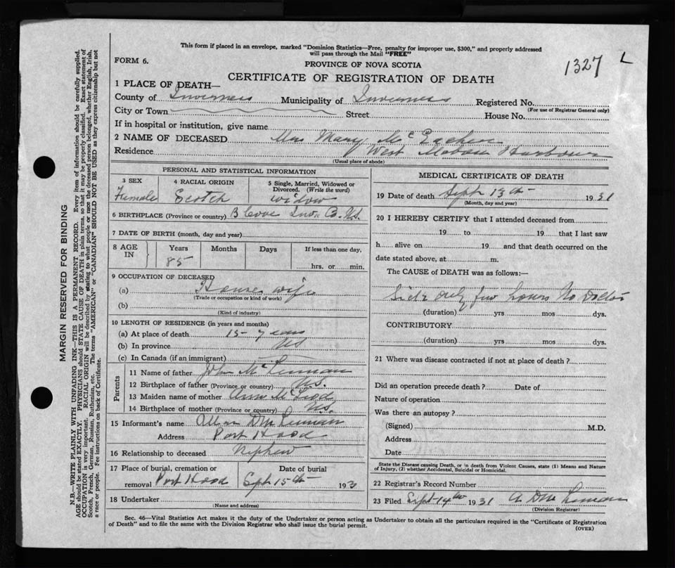 Nova Scotia Archives — https://archives.novascotia.ca/vital-statistics/death/?ID=232799