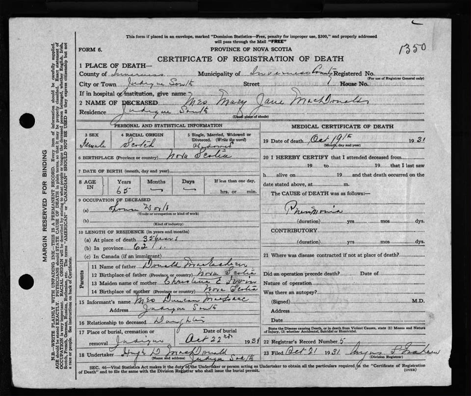 Nova Scotia Archives — https://archives.novascotia.ca/vital-statistics/death/?ID=232822
