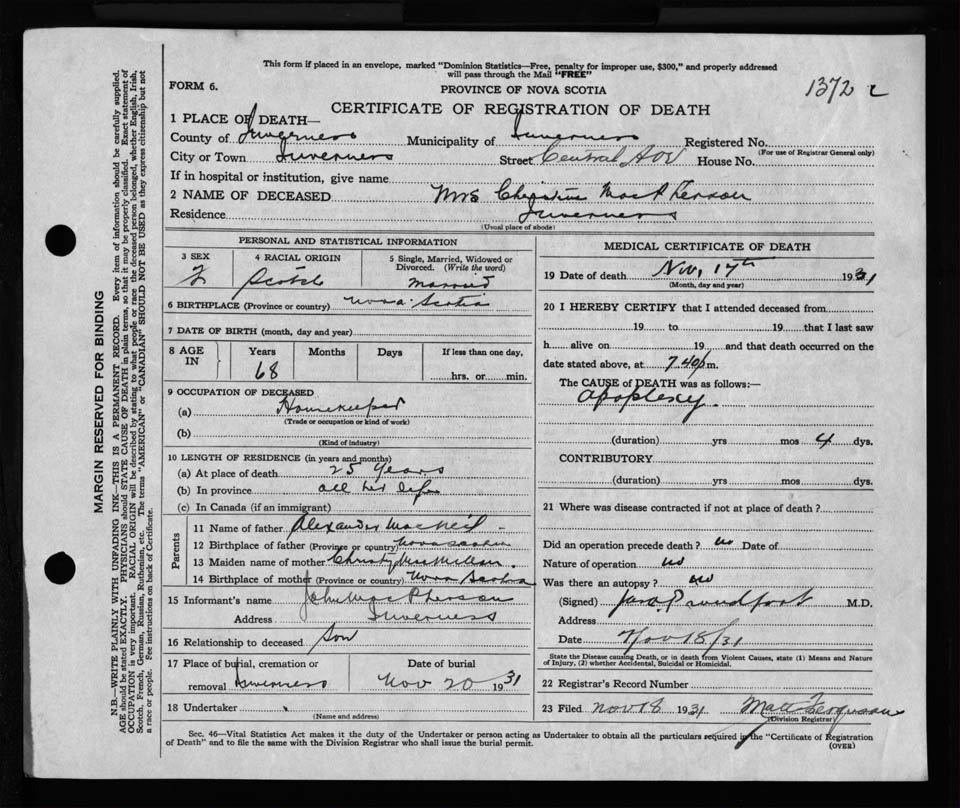 Nova Scotia Archives — https://archives.novascotia.ca/vital-statistics/death/?ID=232844