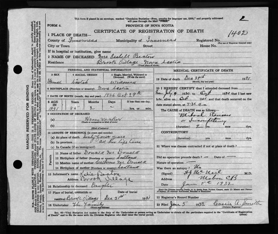 Nova Scotia Archives — https://archives.novascotia.ca/vital-statistics/death/?ID=232874