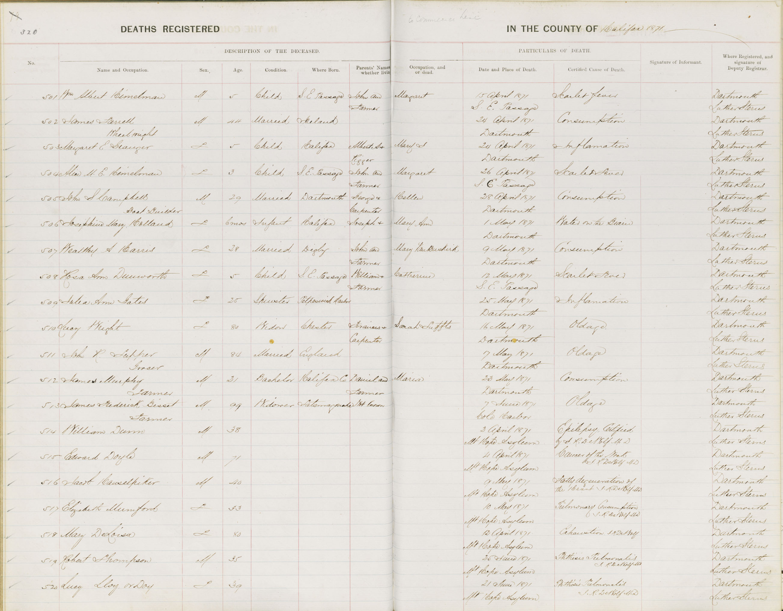 Death Registration: Year: 1871 book: 1808 page: 320 number: 520