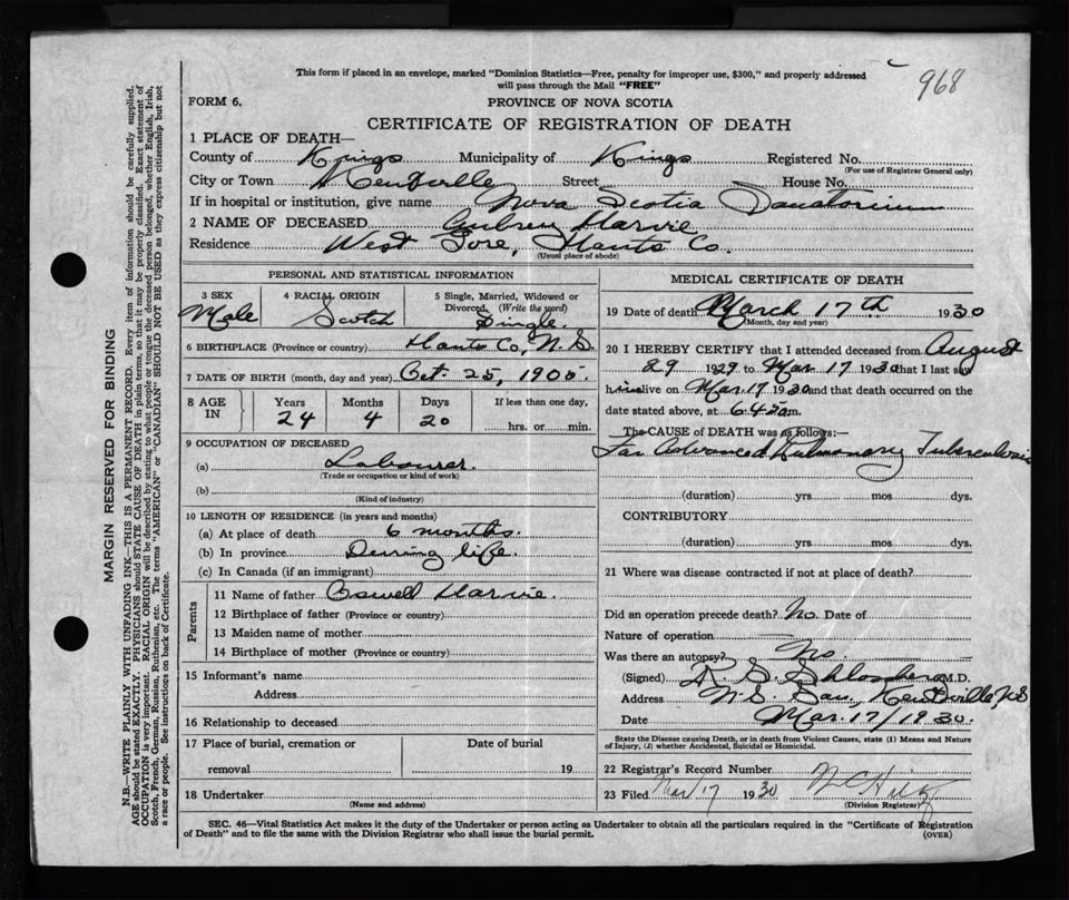Nova Scotia Archives — https://archives.novascotia.ca/vital-statistics/death/?ID=233874