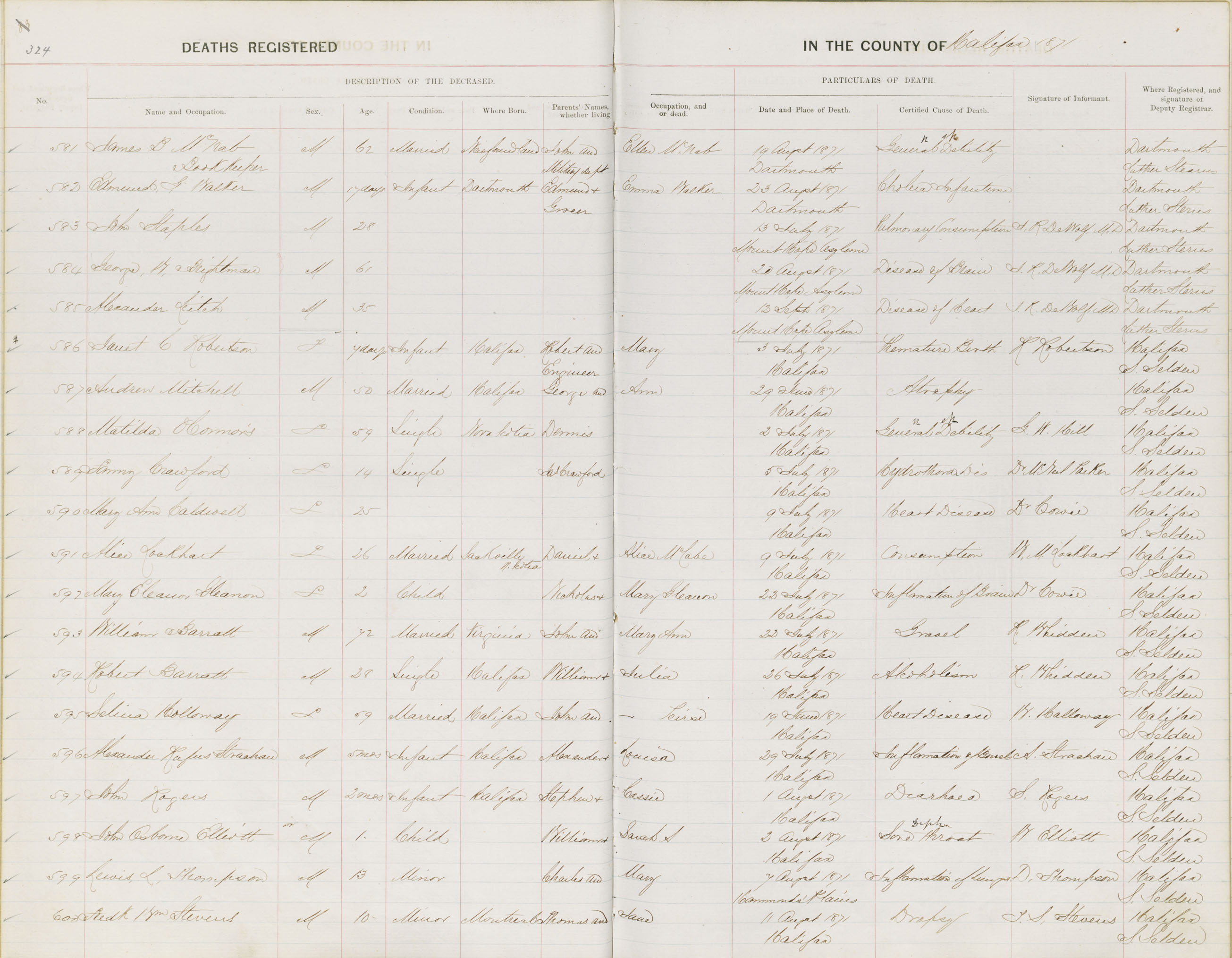 Death Registration: Year: 1871 book: 1808 page: 324 number: 600