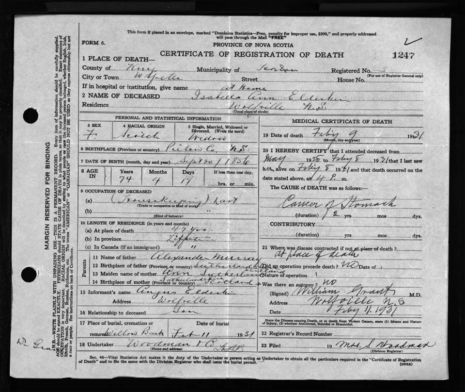 Nova Scotia Archives — https://archives.novascotia.ca/vital-statistics/death/?ID=234153