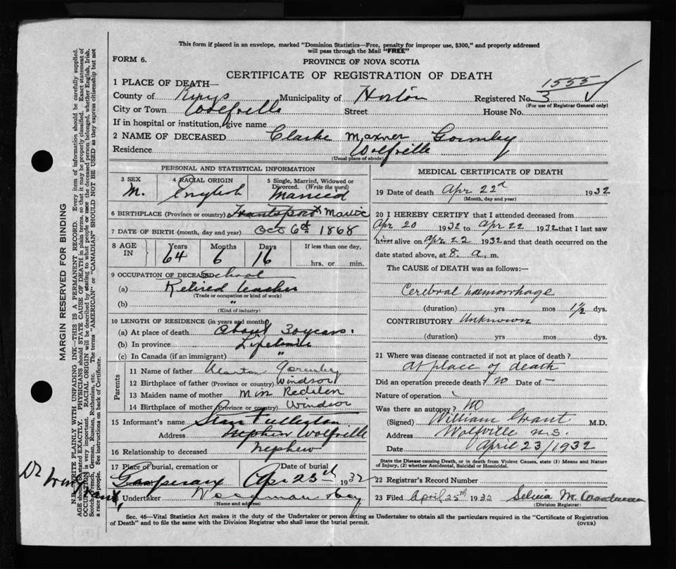 Nova Scotia Archives — https://archives.novascotia.ca/vital-statistics/death/?ID=234460