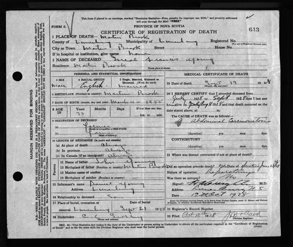 Nova Scotia Archives — https://archives.novascotia.ca/vital-statistics/death/?ID=235338
