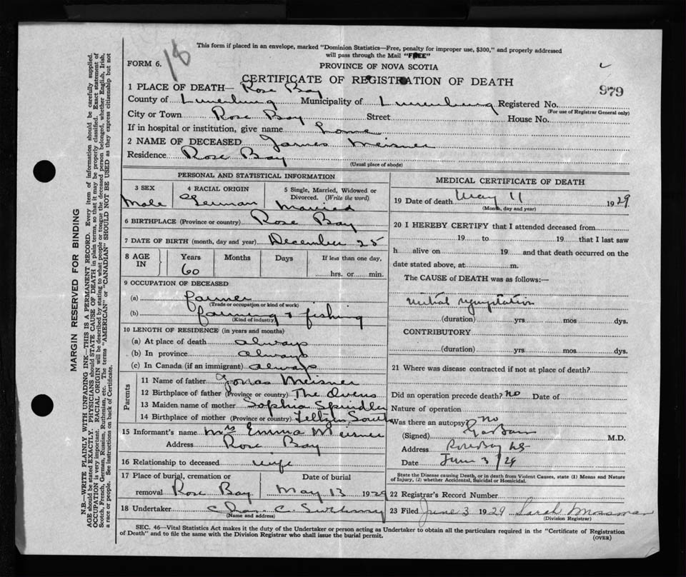Male Death Registration: Year: 1929 file: 127 number: 979