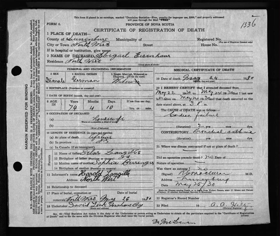 Nova Scotia Archives — https://archives.novascotia.ca/vital-statistics/death/?ID=236029