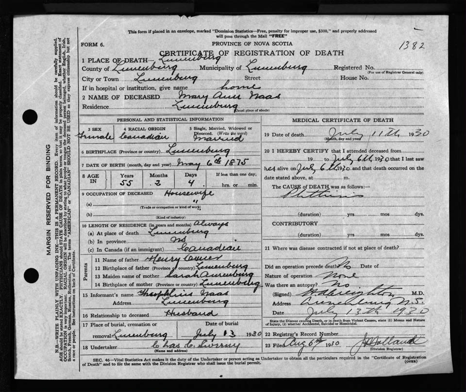 Death Registration: Year: 1930 file: 127 number: 1382