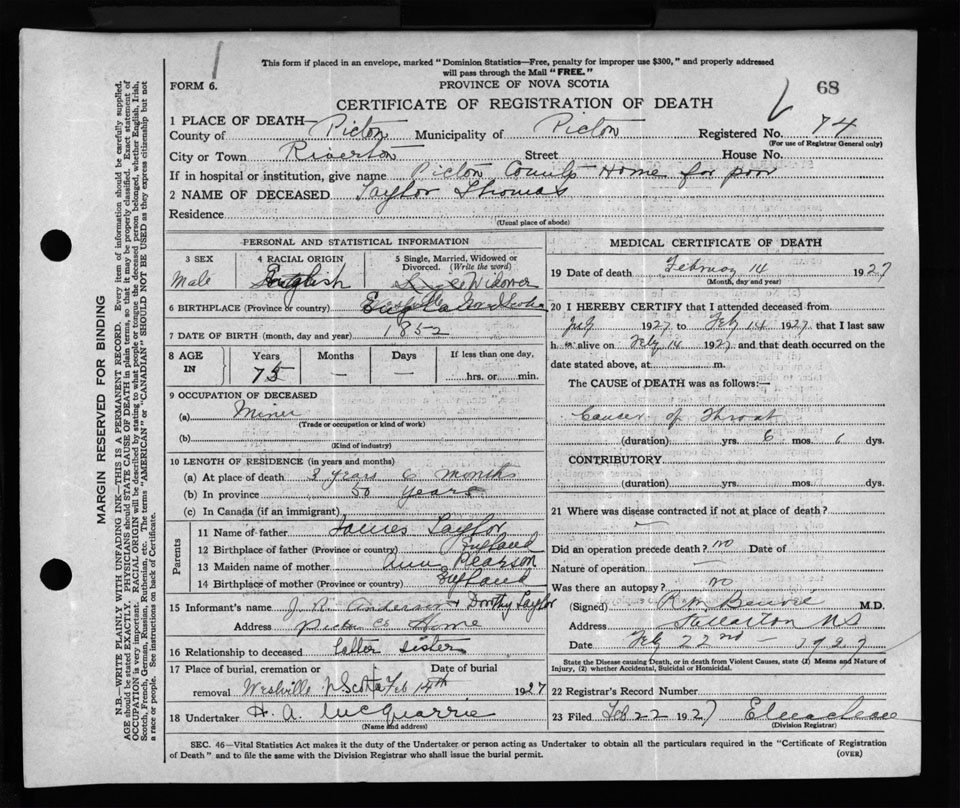 Nova Scotia Archives — https://archives.novascotia.ca/vital-statistics/death/?ID=236299