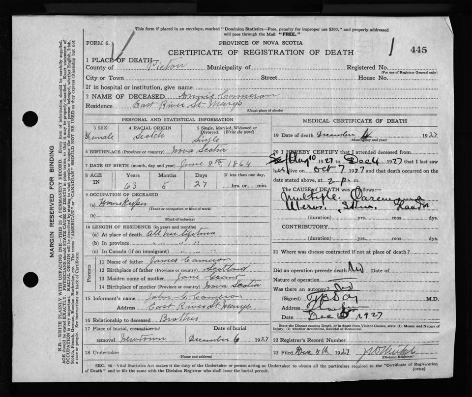 Nova Scotia Archives — https://archives.novascotia.ca/vital-statistics/death/?ID=236676