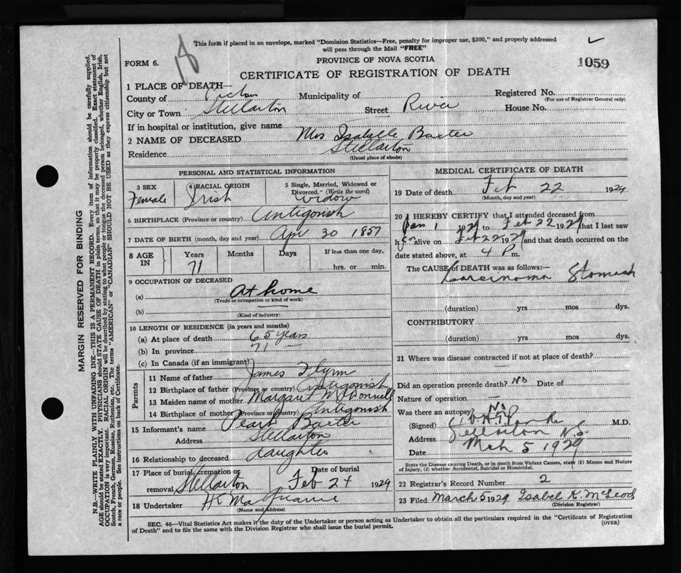 Nova Scotia Archives — https://archives.novascotia.ca/vital-statistics/death/?ID=237290