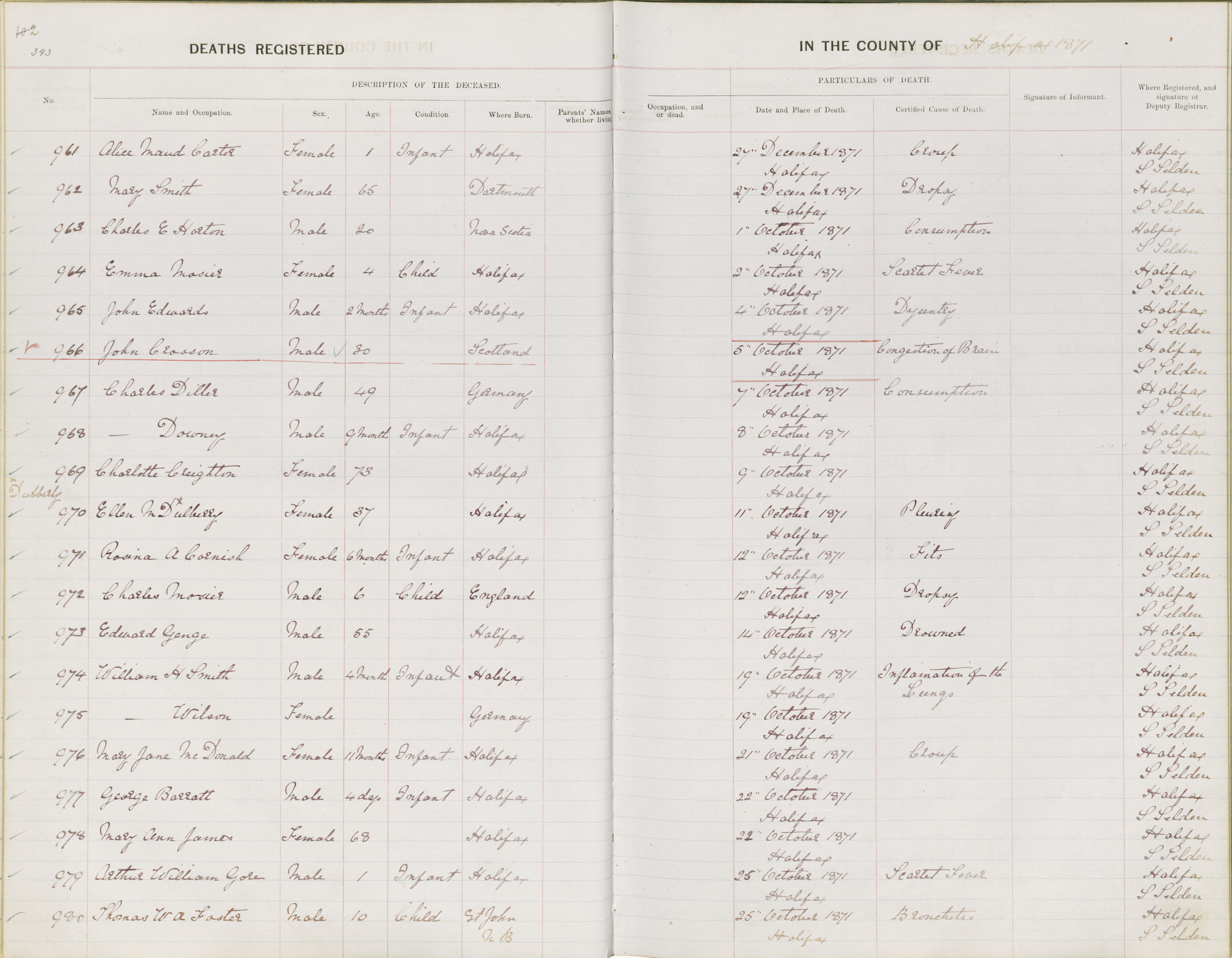 Death Registration: Year: 1871 book: 1808 page: 343 number: 961