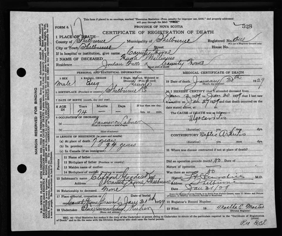 Male Death Registration: Year: 1929 file: 131 number: 328