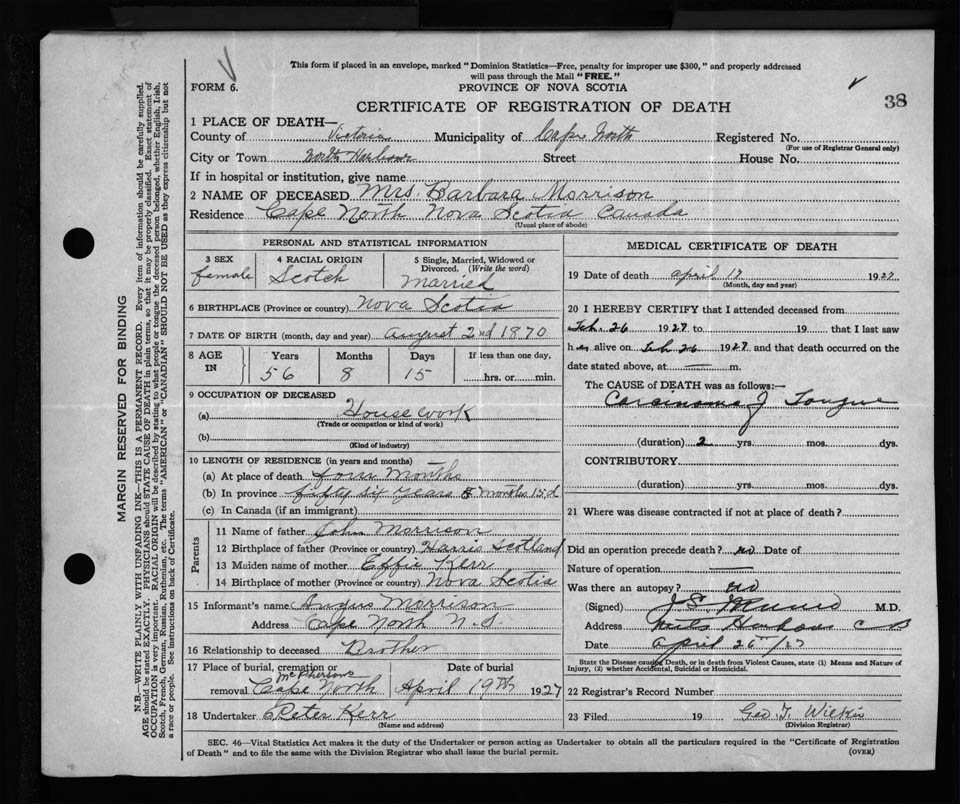 Nova Scotia Archives — https://archives.novascotia.ca/vital-statistics/death/?ID=241765