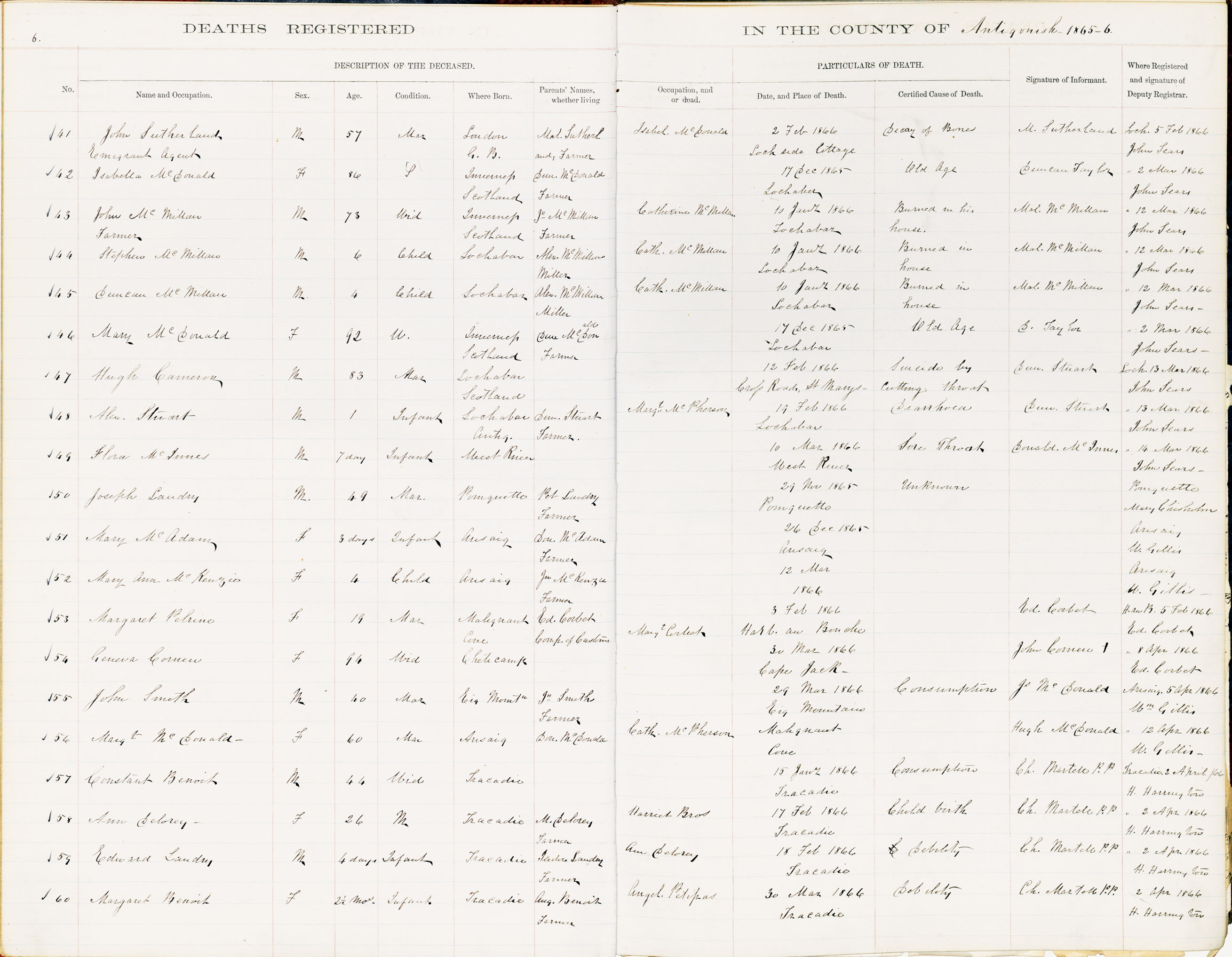 Death Registration: Year: 1866 book: 1802 page: 6 number: 60