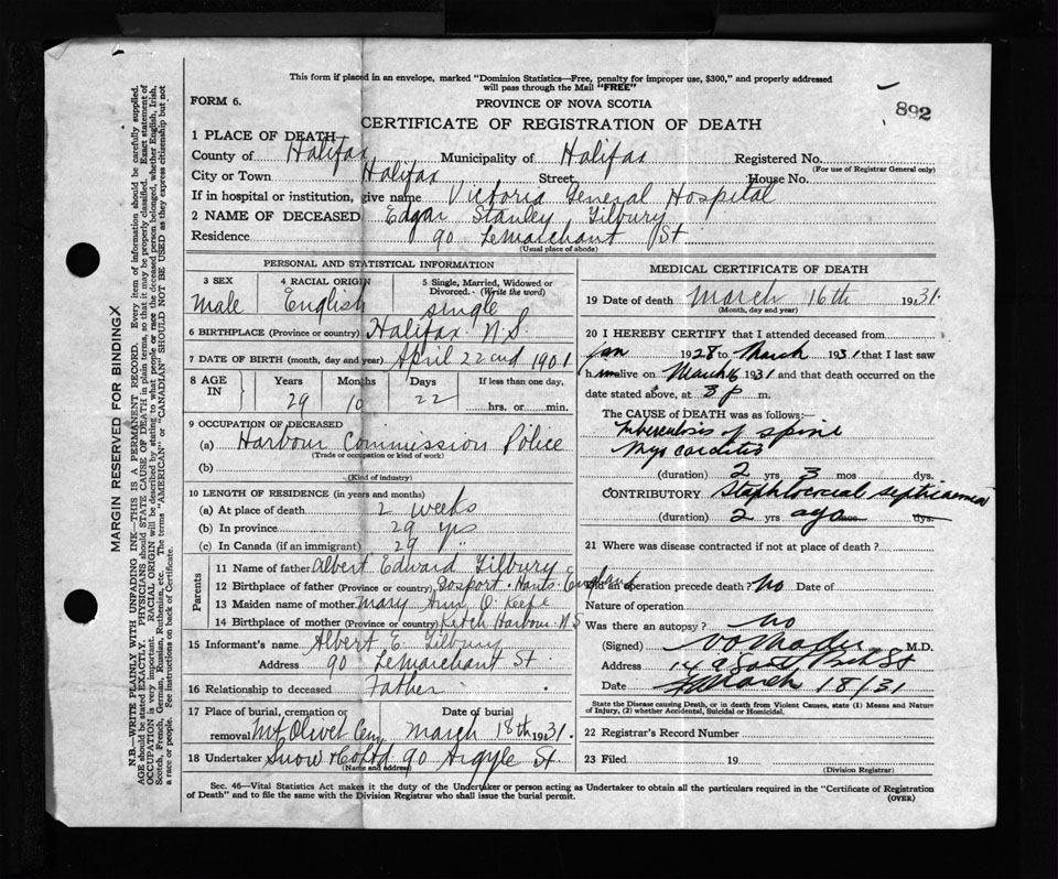 Male Death Registration: Year: 1931 file: 135 number: 892