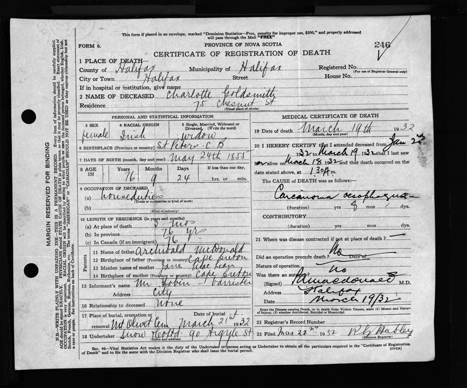 Nova Scotia Archives — https://archives.novascotia.ca/vital-statistics/death/?ID=248108