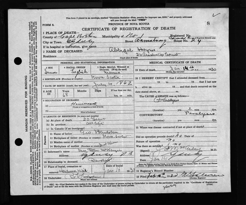 Nova Scotia Archives — https://archives.novascotia.ca/vital-statistics/death/?ID=252005