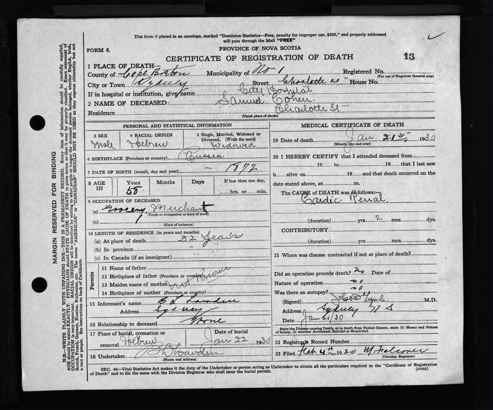 Nova Scotia Archives — https://archives.novascotia.ca/vital-statistics/death/?ID=252010