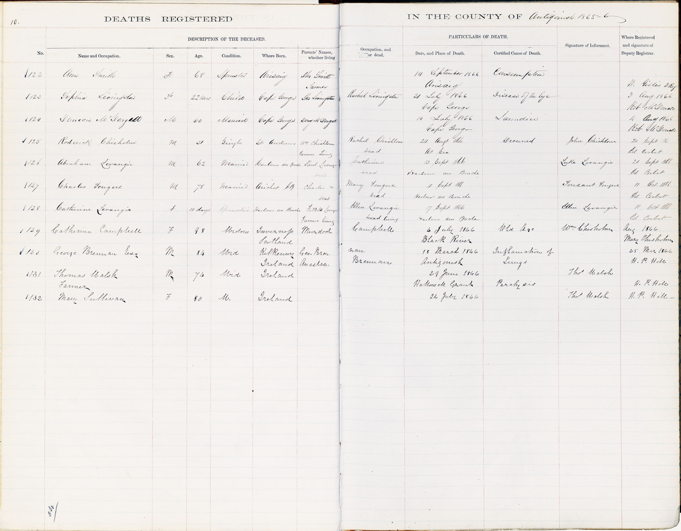 Female Death Registration: Year: 1866 book: 1802 page: 10 number: 132
