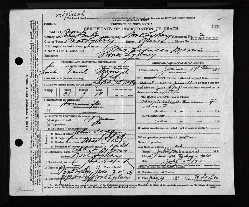 Female Death Registration: Year: 1931 file: 141 number: 176